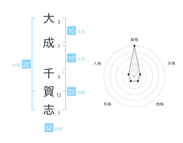 大成 千賀志さんを姓名の画数から五運を鑑定