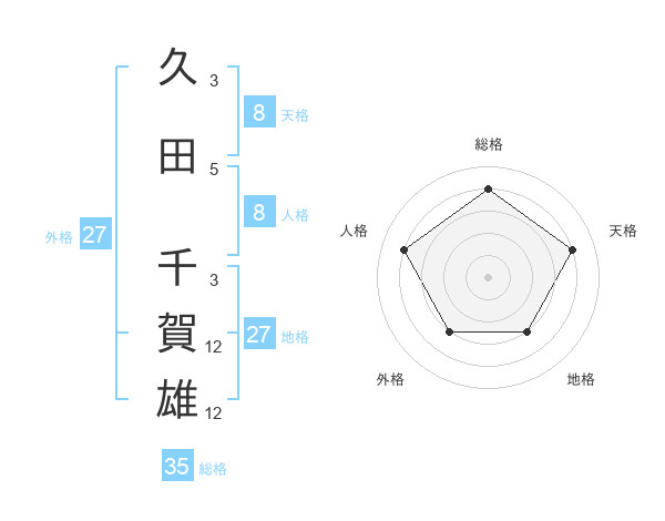 久田 千賀雄さんを姓名の画数から五運を鑑定