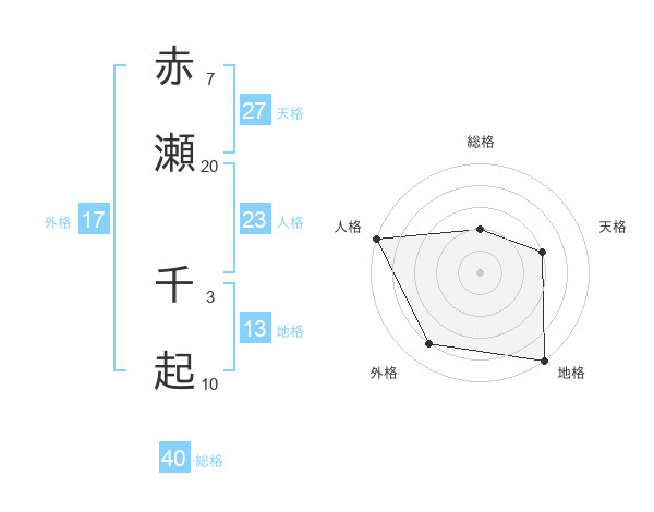 赤瀬 千起さんを姓名の画数から五運を鑑定
