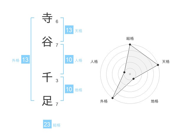寺谷 千足さんの天格は13画の5点!