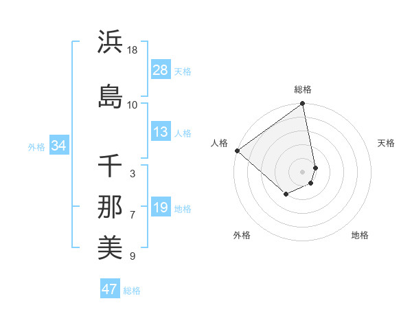 浜島 千那美さんを姓名の画数から五運を鑑定