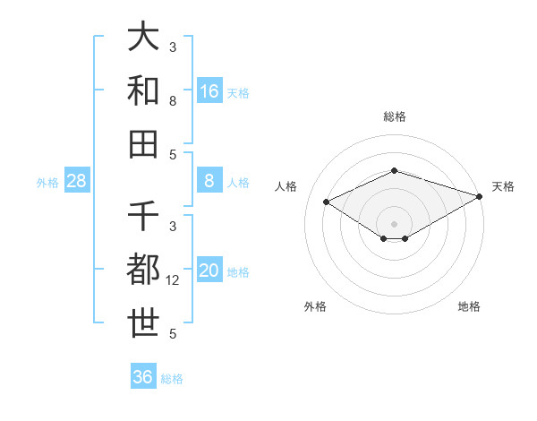 大和田 千都世さんを姓名の画数から五運を鑑定