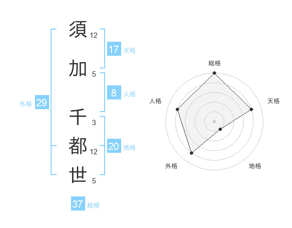 須加 千都世さんの総格は37画の5点!