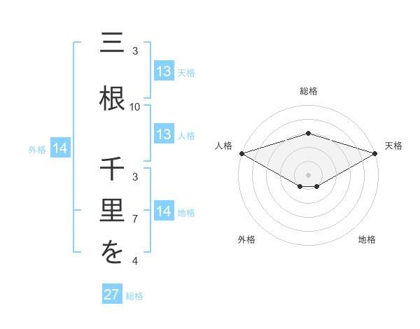三根 千里をさんの天格は13画の5点!