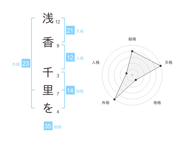 浅香 千里をさんを姓名の画数から五運を鑑定