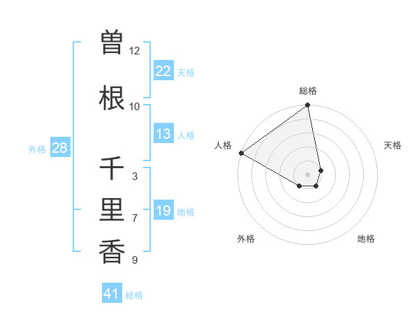 曽根 千里香さんの総格は41画の5点!