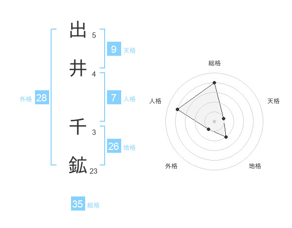 出井 千鉱さんの総格は35画の4点!