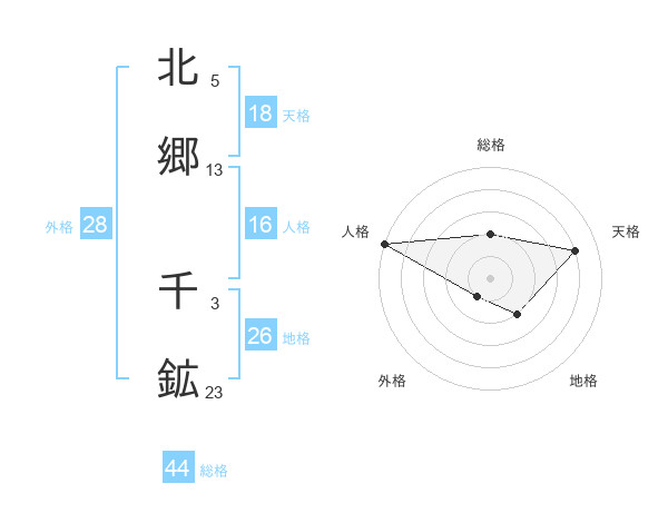 北郷 千鉱さんを姓名の画数から五運を鑑定