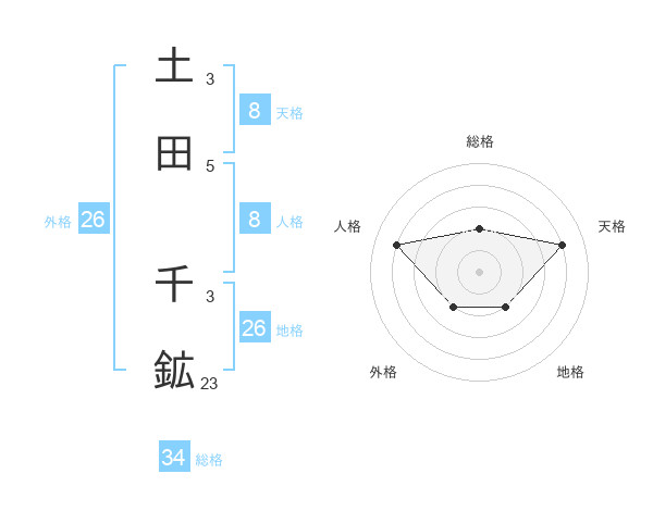 土田 千鉱さんの天格は8画の4点!