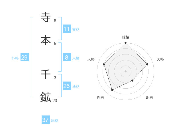 寺本 千鉱さんの天格は11画の4点!
