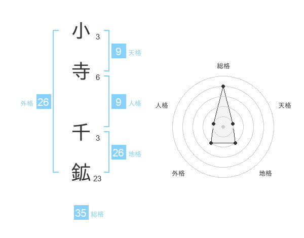 小寺 千鉱さんの総格は35画の4点