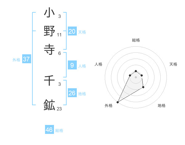 小野寺 千鉱さんの外格は37画の5点!
