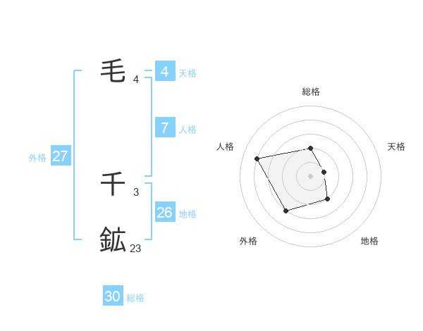 毛 千鉱さんを姓名の画数から五運を鑑定
