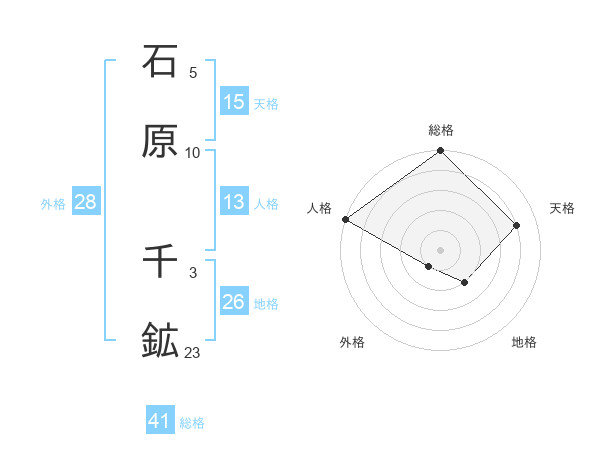 石原 千鉱さんの総格は41画の5点!