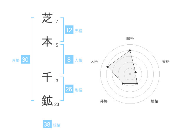芝本 千鉱さんを姓名の画数から五運を鑑定