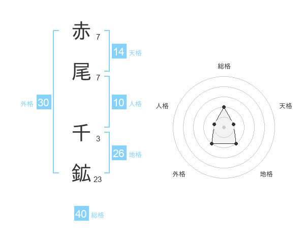 赤尾 千鉱さんを姓名の画数から五運を鑑定