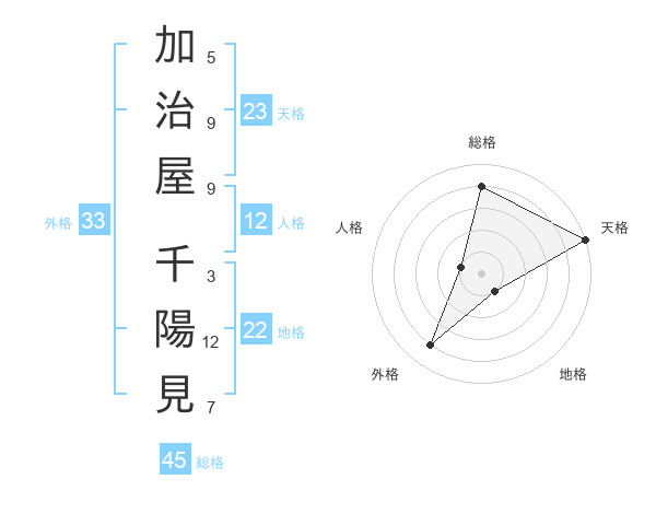 加治屋 千陽見さんの総格は45画の4点!