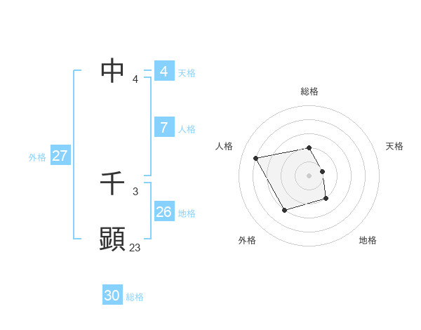 中 千顕さんの総格は30画の2点!