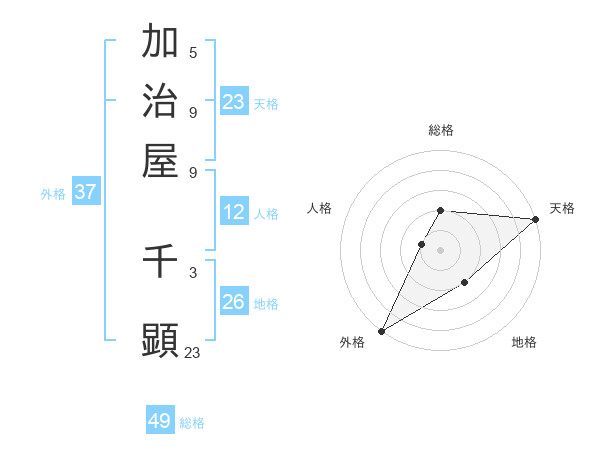 加治屋 千顕さんを姓名の画数から五運を鑑定