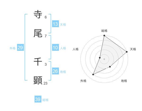 寺尾 千顕さんの総格は39画の5点!