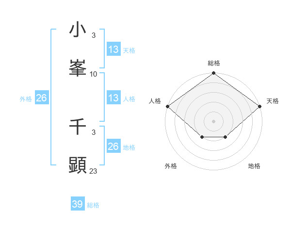 小峯 千顕さんを姓名の画数から五運を鑑定