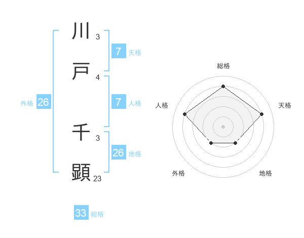 川戸 千顕さんを姓名の画数から五運を鑑定