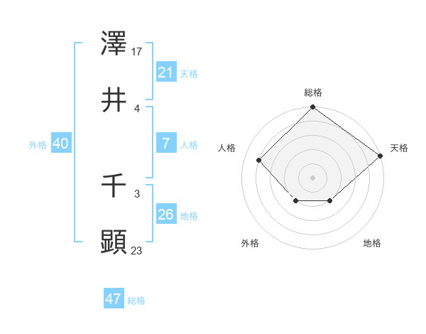 澤井 千顕さんの総格は47画の5点!
