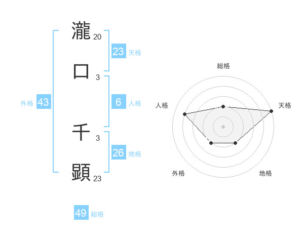 瀧口 千顕さんの天格は23画の5点!