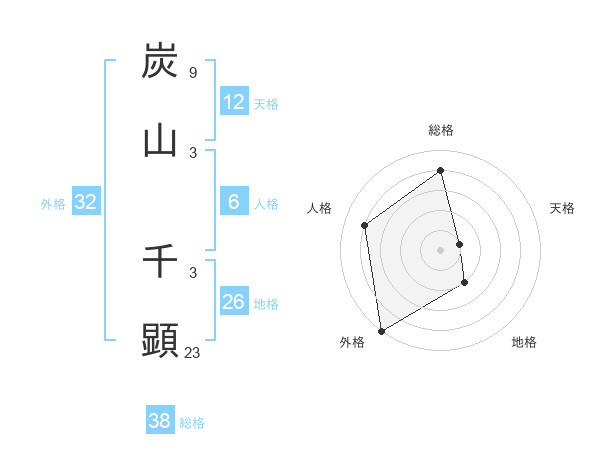 炭山 千顕さんの総格は38画の4点!