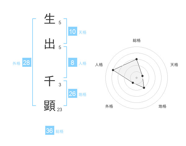 生出 千顕さんの外格は28画の1点!