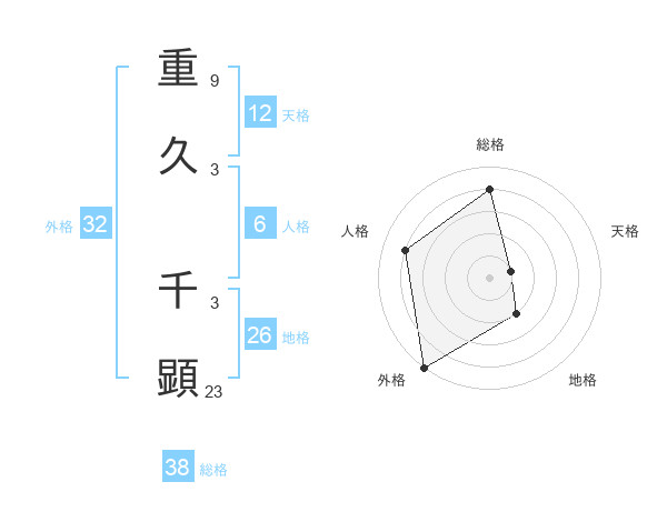 重久 千顕さんの総格は38画の4点!