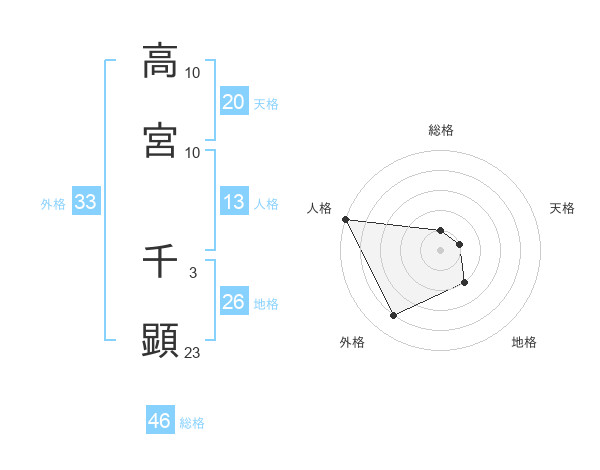 高宮 千顕さんを姓名の画数から五運を鑑定