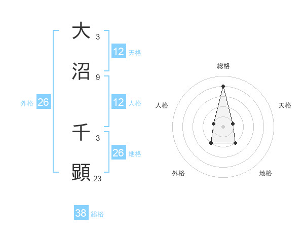 大沼 千顕さんを姓名の画数から五運を鑑定