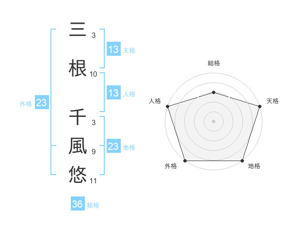 三根 千風悠さんを姓名の画数から五運を鑑定