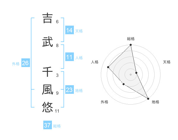 吉武 千風悠さんの総格は37画の5点!