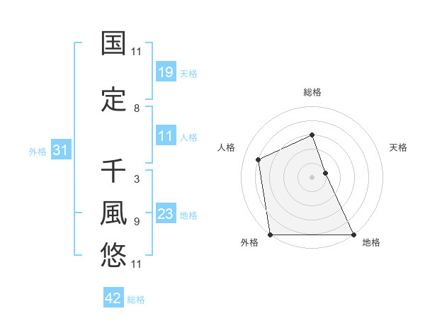 国定 千風悠さんを姓名の画数から五運を鑑定