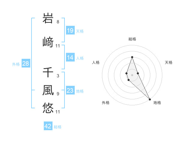 岩﨑 千風悠さんの地格は23画の5点!