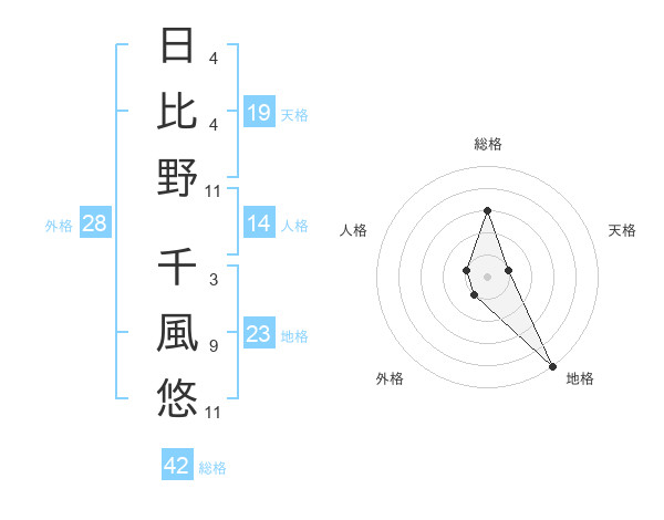 日比野 千風悠さんを姓名の画数から五運を鑑定