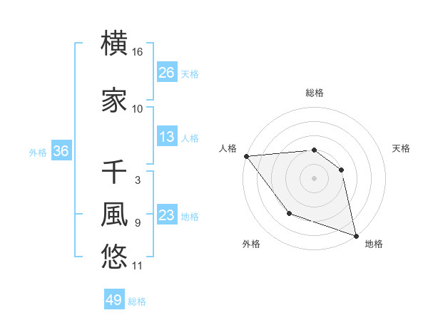 横家 千風悠さんを姓名の画数から五運を鑑定