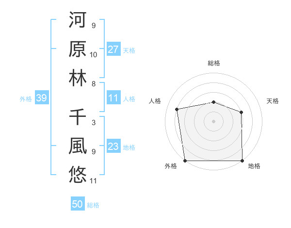 河原林 千風悠さんを姓名の画数から五運を鑑定