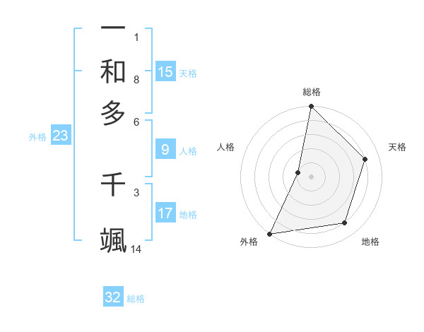 一和多 千颯さんの総格は32画の5点!