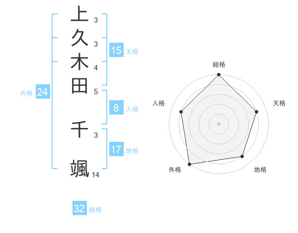 上久木田 千颯さんの総格は32画の5点!
