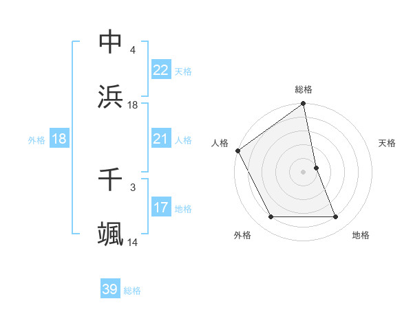 中浜 千颯さんの総格は39画の5点!