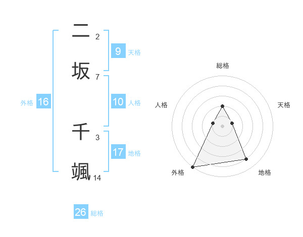二坂 千颯さんの総格は26画の2点!
