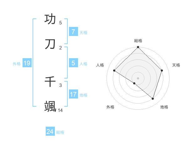 功刀 千颯さんを姓名の画数から五運を鑑定