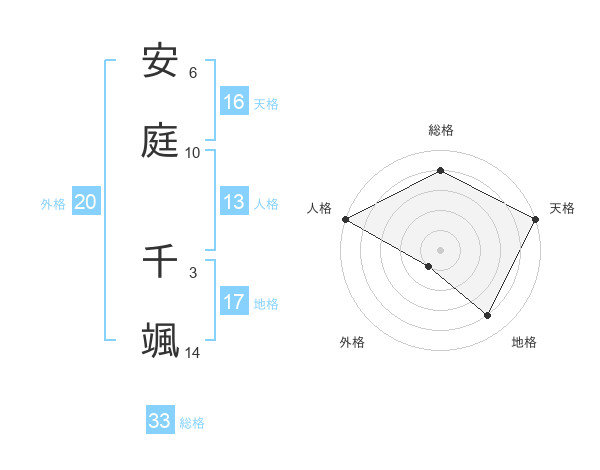 安庭 千颯さんを姓名の画数から五運を鑑定