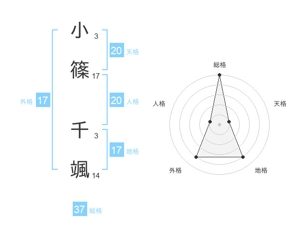 小篠 千颯さんの総格は37画の5点!