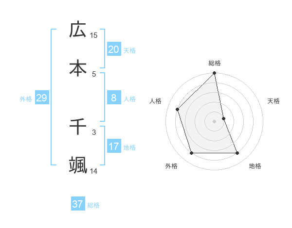広本 千颯さんの総格は37画の5点!