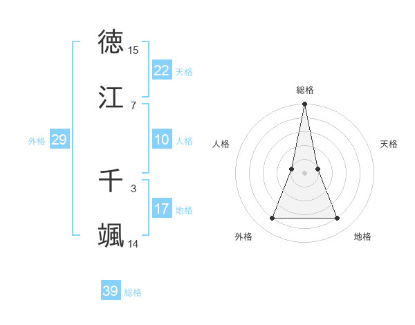 徳江 千颯さんの総格は39画の5点!
