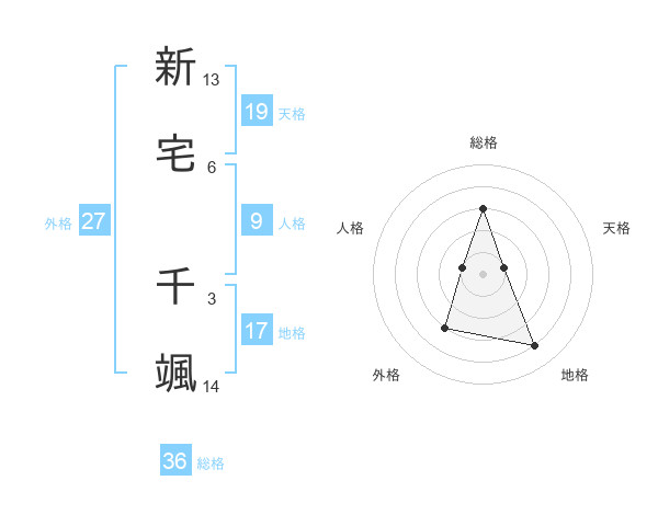 新宅 千颯さんの外格は27画の3点!